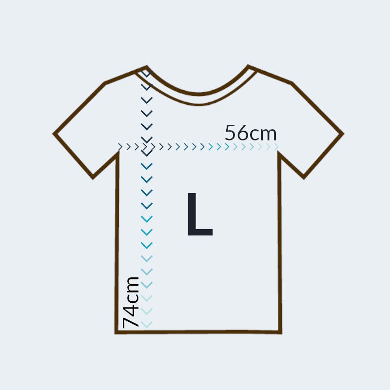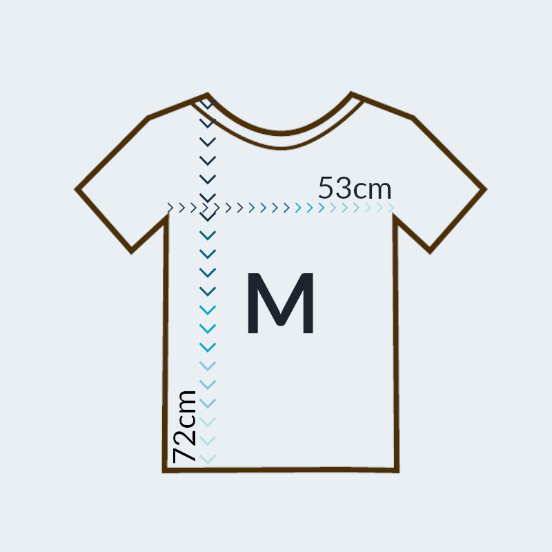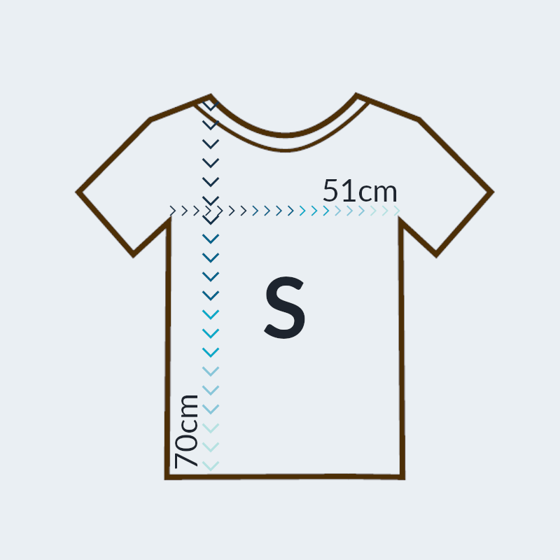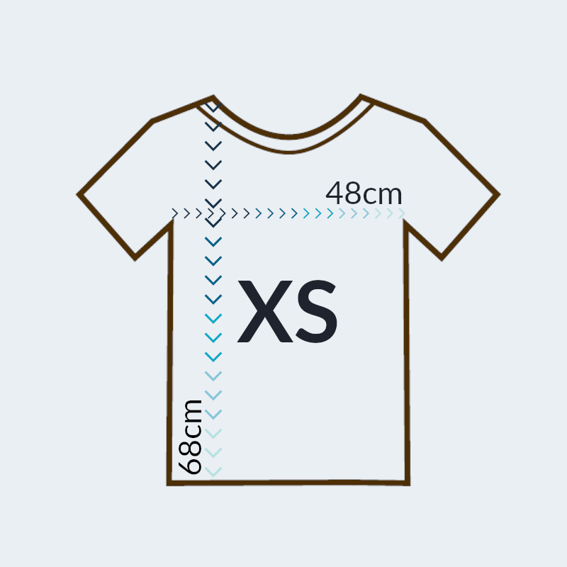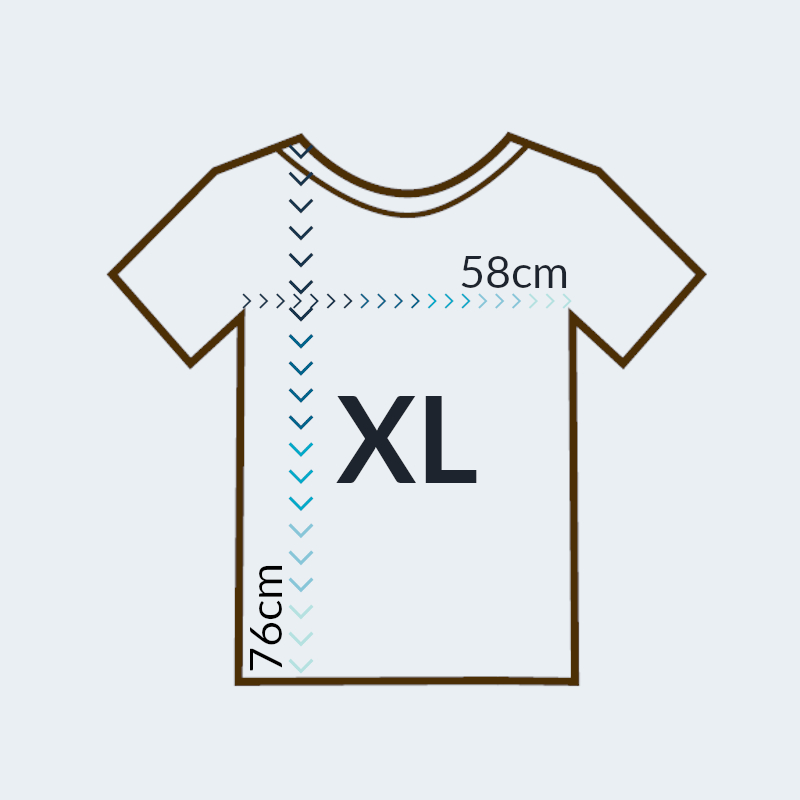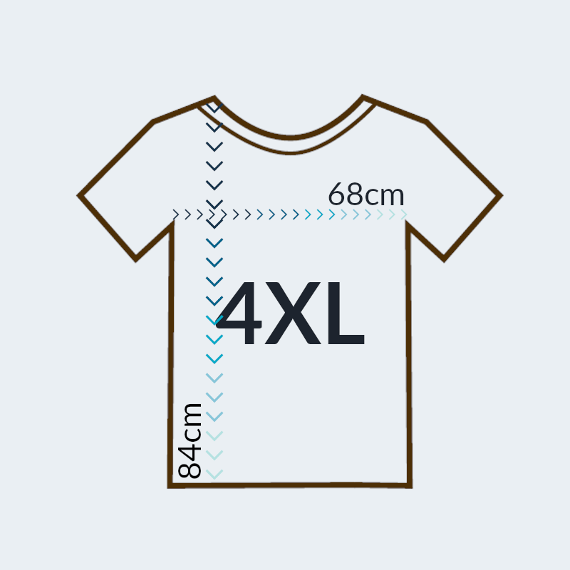 Koszulka dostępna w dziewięciu rozmiarach od XS do 5XL. Zapoznaj się z jej dokładnymi wymiarami w cm, ponieważ koszulki są większe od standardowych.